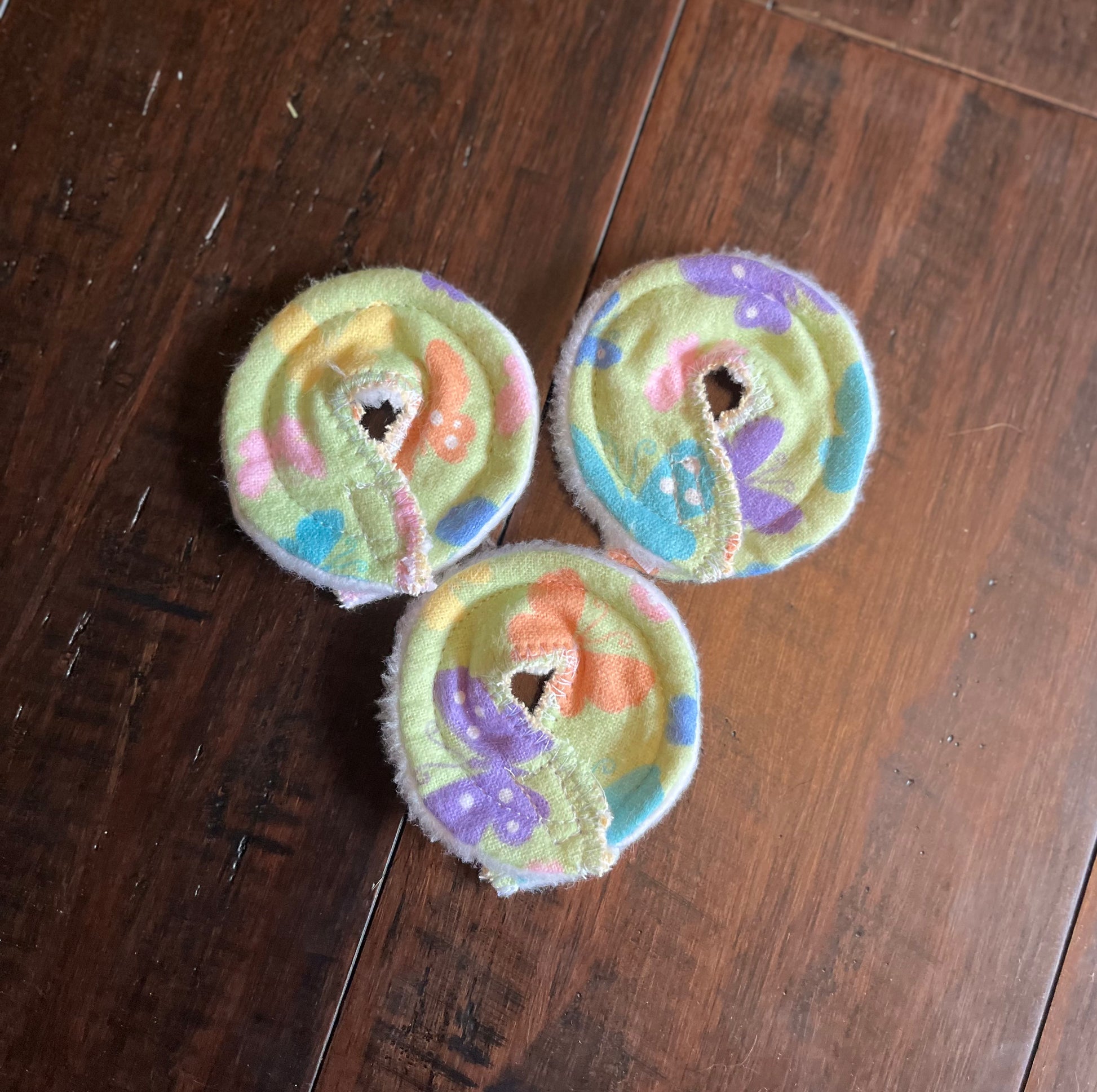 This sale is for THREE finished gtube pads. They measure approximately 2.75" and are made with a fleece backing and snap or velcro closure. Due to the personal nature of these products, they are NON-REFUNDABLE and cannot be returned. It is your responsibility to measure! All sales are FINAL.