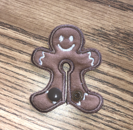 INCLUDES: (1) embroidered gingerbread man gtube pad