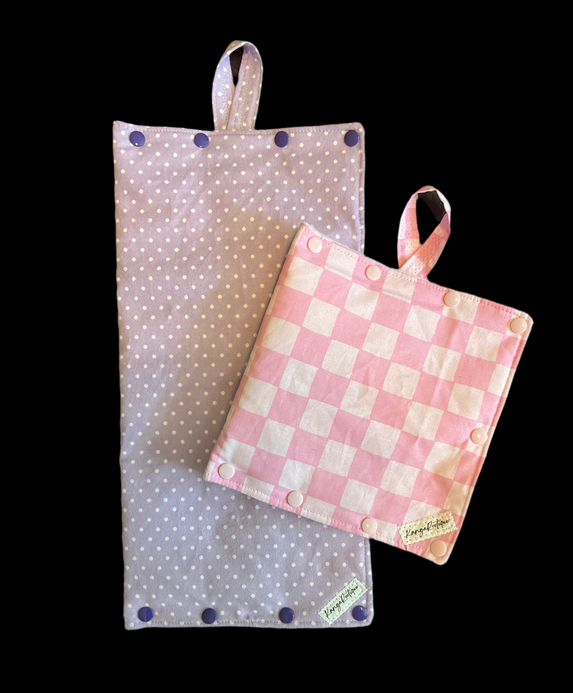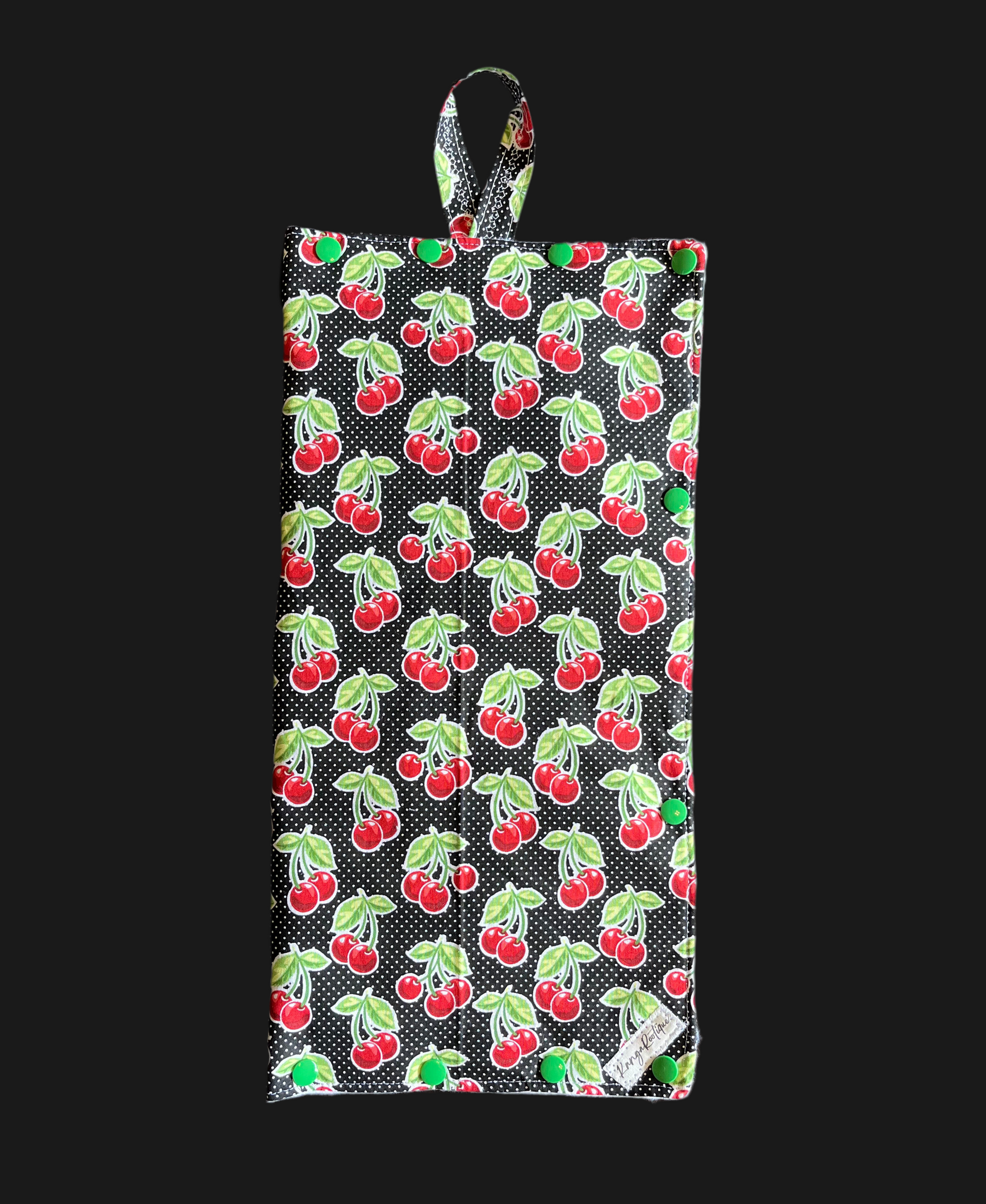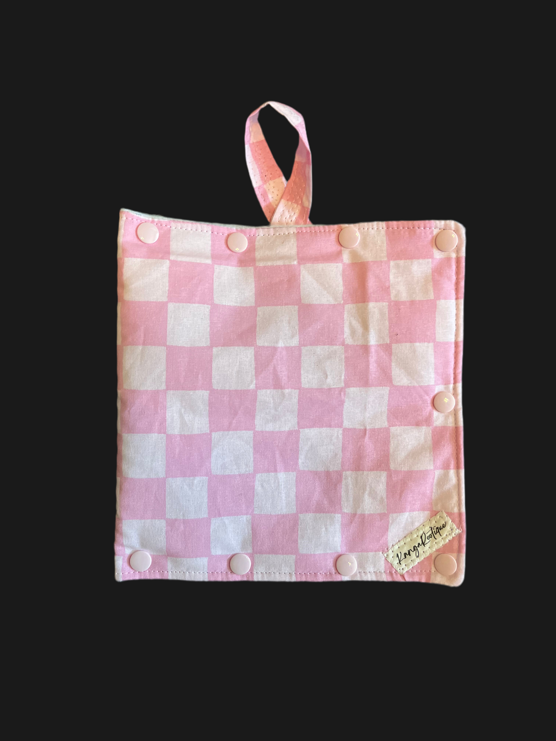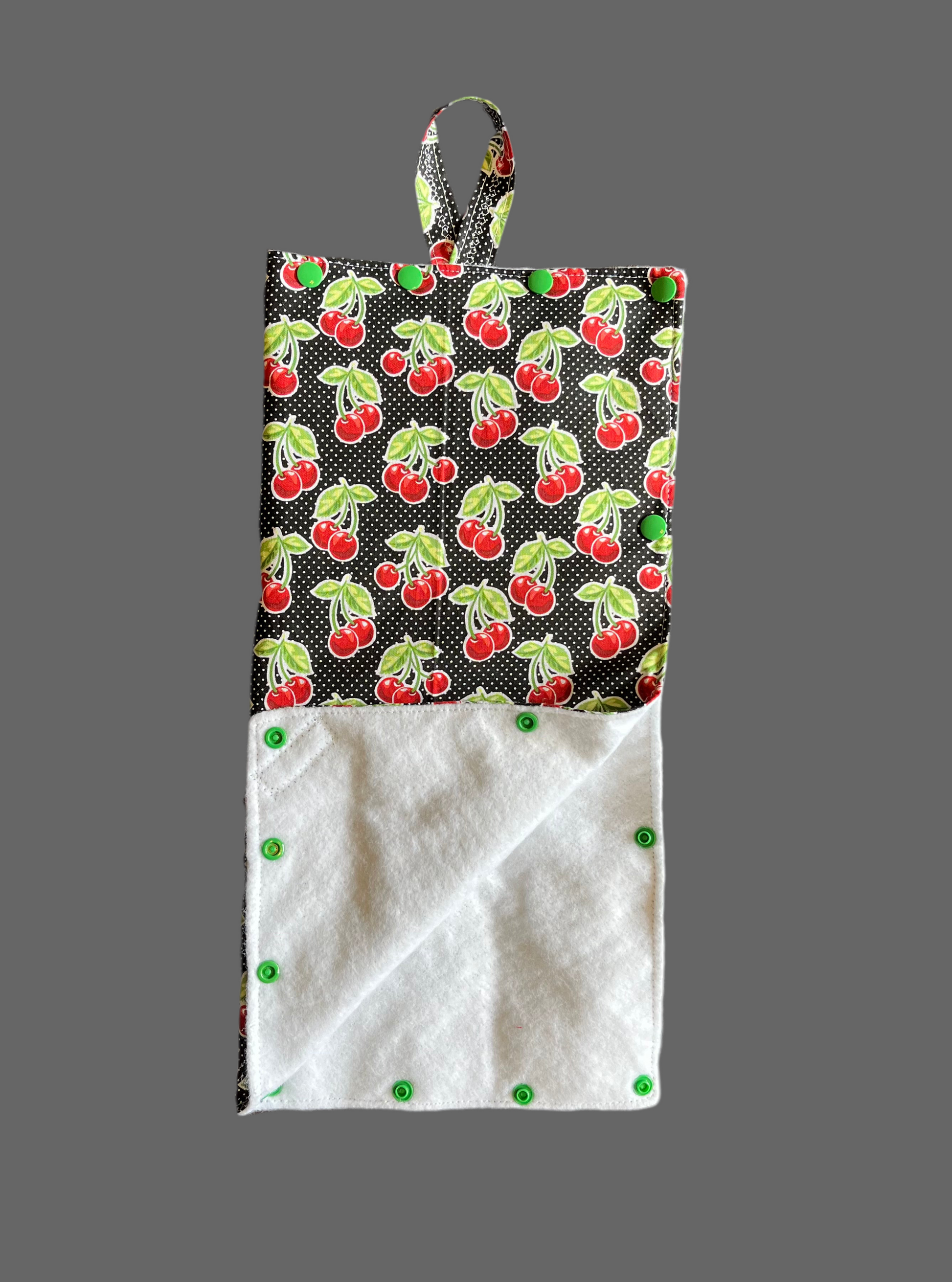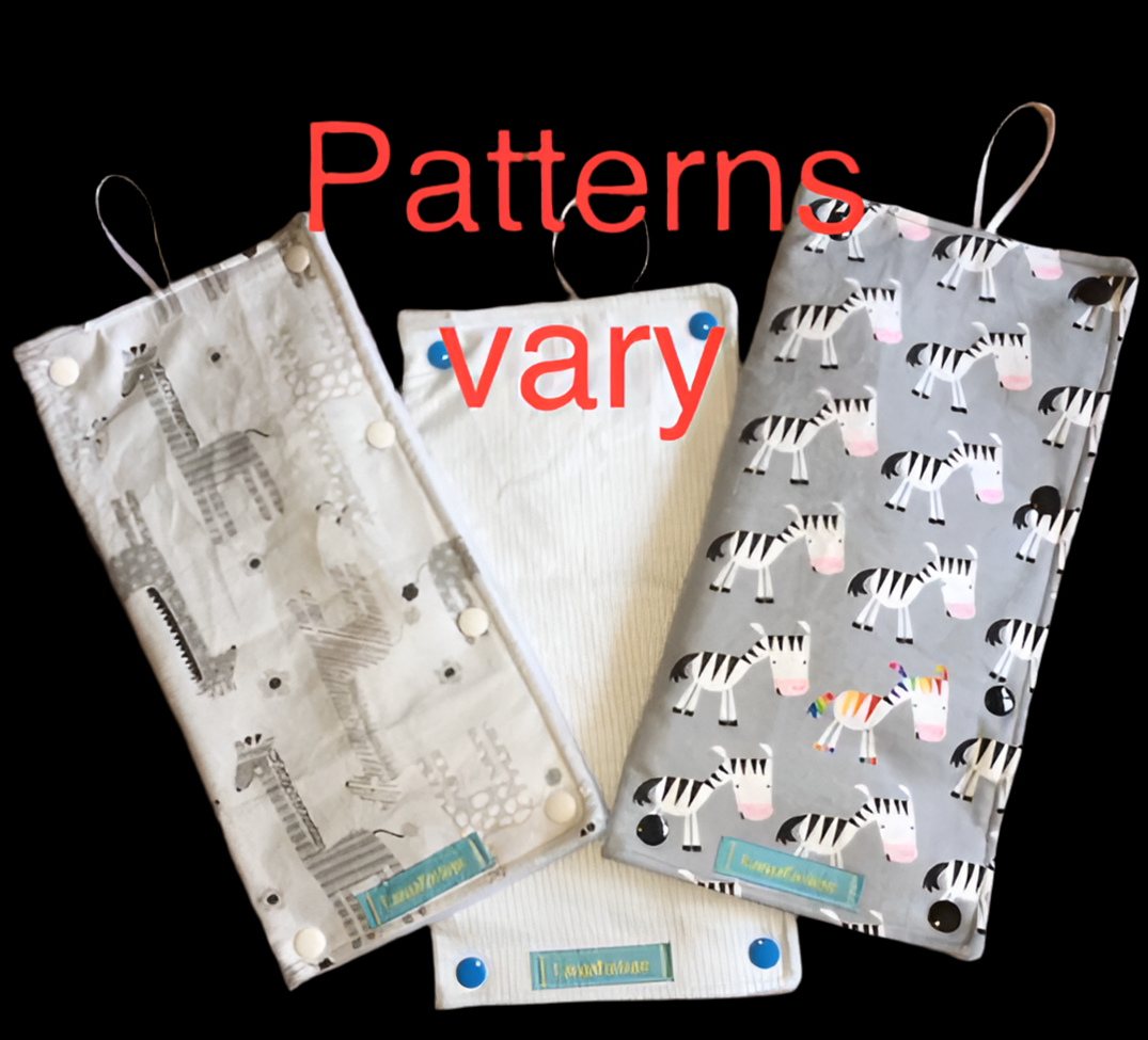 Insulated hanging cover for enteral feeding bags - made of quality outer fabric and insulated inner fabric to keep liquids cold or warm. Includes strap for hanging from IV pole. Snaps allow for easy opening and closing and allows for tubing to hang from the bottom of the bag without being compromised. These are made to fit the enteral bag with a little extra room for a slim ice pack if needed.