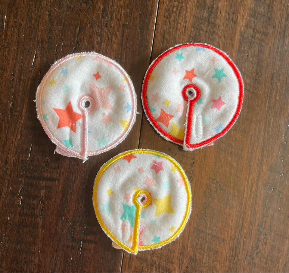 Sale is for ONE adorable embroidered handmade cloth g-tube pad with antipill fleece backing and snap closure. It measures 2.75" and is a great alternative to gauze and tape for your gtube. Great at soaking up any leakage and for tube stabilization.