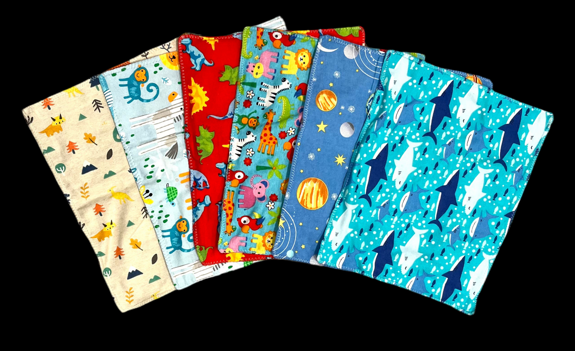 Reusable, washable paper towels. These are such a nice change from the many rolls of paper towels my kids go through! Made of 2-ply absorbent flannel with serged edges. Measures 12x10".