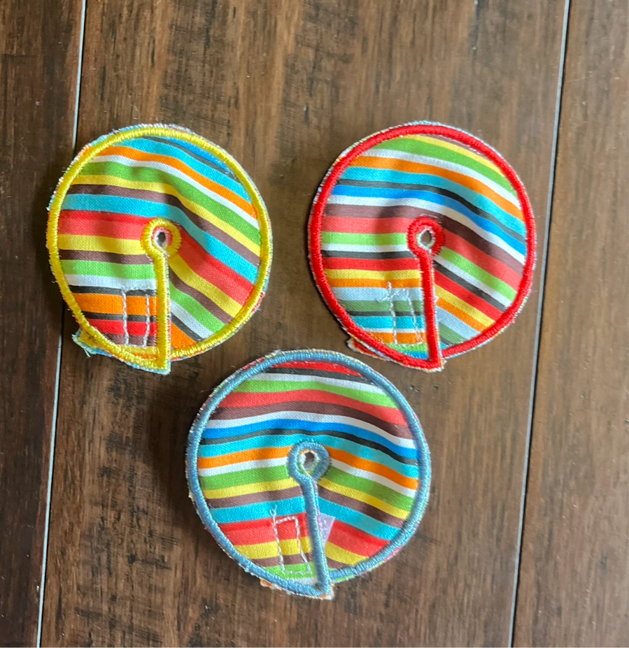 Sale is for ONE adorable embroidered handmade cloth g-tube pad with antipill fleece backing and snap/velcro closure. It measures 2.75" and is a great alternative to gauze and tape for your gtube. Great at soaking up any leakage and for tube stabilization.