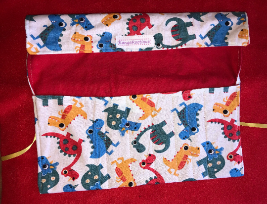 Syringe roll for keeping medication syringes and all of your gtube "extras" ready to go! These have several compartments for various-size syringes (full or empty), gtube pad storage, and more! It folds over and closes in thirds with a cute ribbon to tie it closed. Fully washable and lined to keep messes contained.