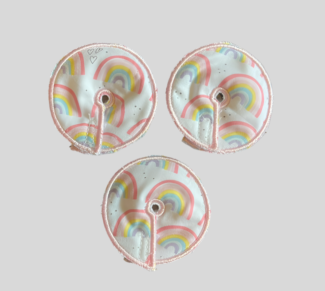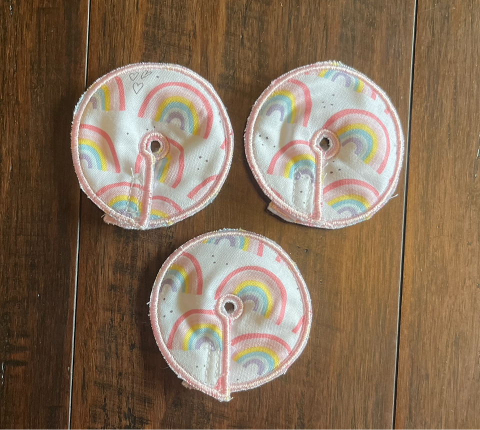 Sale is for ONE adorable embroidered handmade cloth g-tube pad with antipill fleece backing and snap closure. It measures 2.75" and is a great alternative to gauze and tape for your gtube. Great at soaking up any leakage and for tube stabilization.