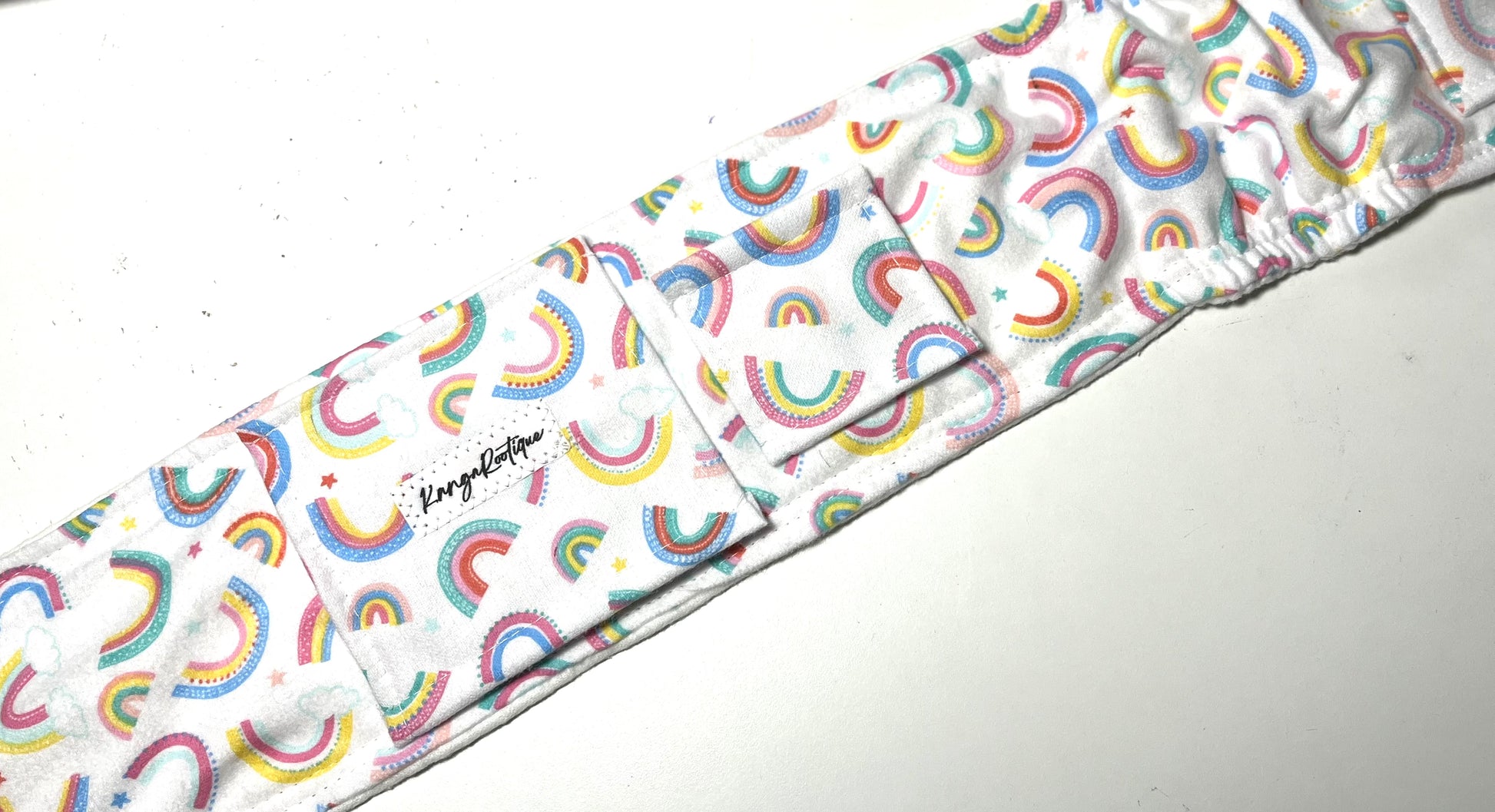 This sale is for one finished g-tube belly belt/band with triple-stitched velcro closure and elastic for a better fit. It has a velcro window for easy tube access as well as 2 velcro tabs to hold extension tubing. This is a PREMADE belt - if you need changes to be made, you will need to order a custom belt. Matching gtube pads available here: Pastel rainbow gtube pad – KangaRootique